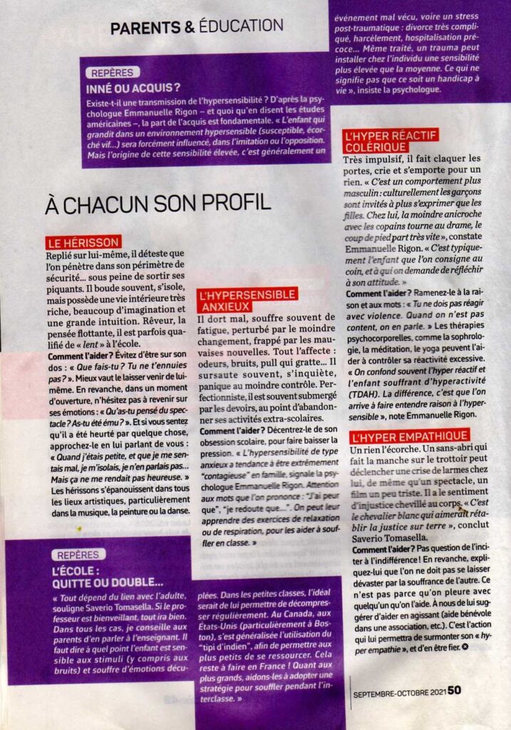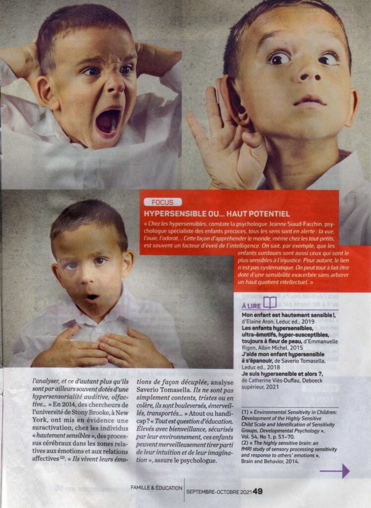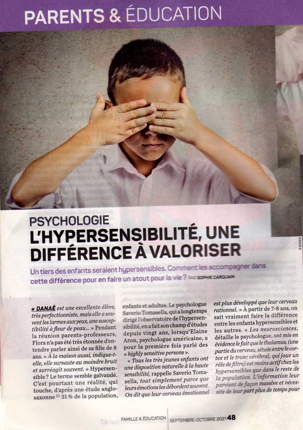 Un tiers des enfants seraient hypersensibles. Comment les accompagner dans cette différence pour en faire un atout pour la vie ! Voici un article issu du magazine « Famille et Education » du mois de septembre-octobre 2021 que vous retrouvez ci-dessous. Publications similaires :